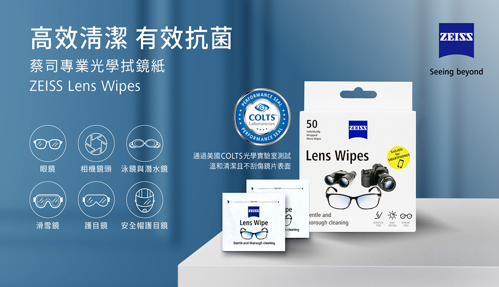 蔡司WIPES拭鏡紙具有清潔、除菌、安全、便攜等四大功能,當您外出活動時,這種蔡司預浸式微細的紙巾能保證有效和快速地清潔眼鏡。適用於清潔所有類型的敏感光學表面(例如LCD 顯示器、手機、平板電腦、筆記本電腦、行動電話等),輕鬆且不留痕跡。