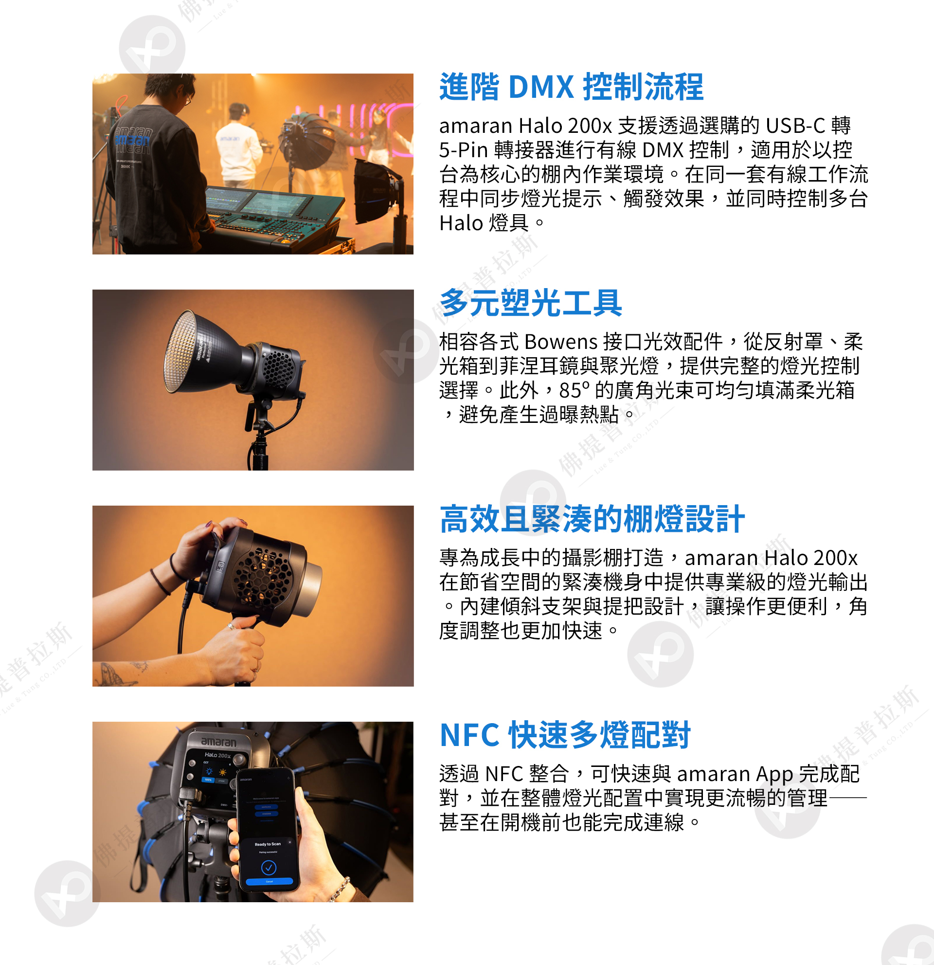 ★透過 USB-C 支援 DMX 控制:搭配 USB-C 轉 DMX 轉接器(需另購),可整合至業界標準燈光控台與軟體系統