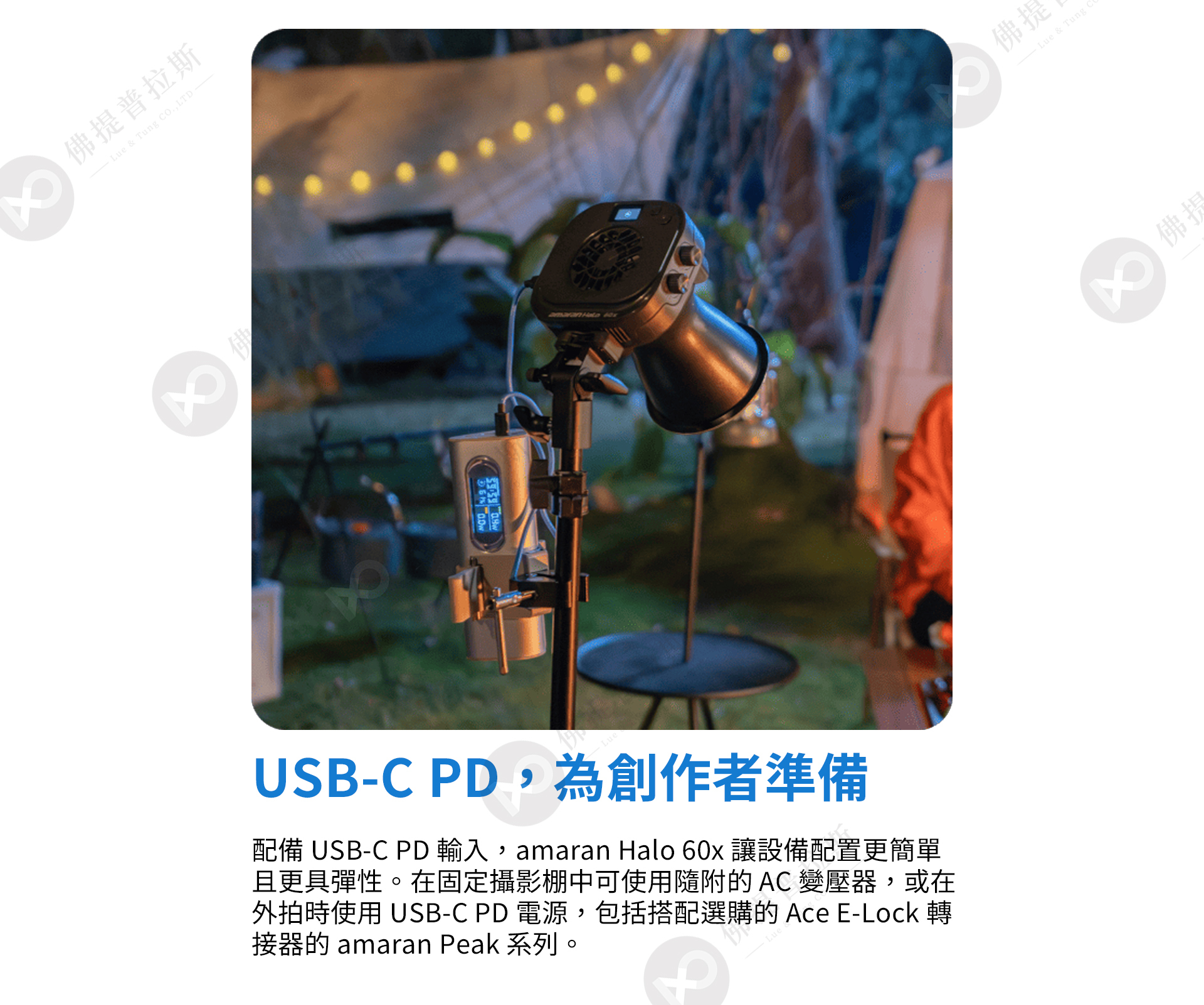 ★簡單且靈活的 USB-C PD 輸入:可於固定攝影棚使用隨附 AC 變壓器供電,或搭配相容的 USB-C PD 3.0 電源使用