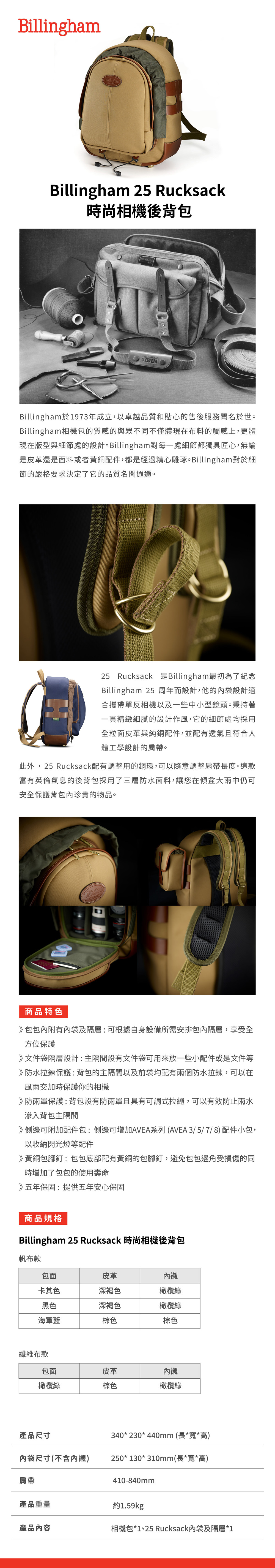 ★ 25 Rucksack是紀念 Billingham 25周年而設計