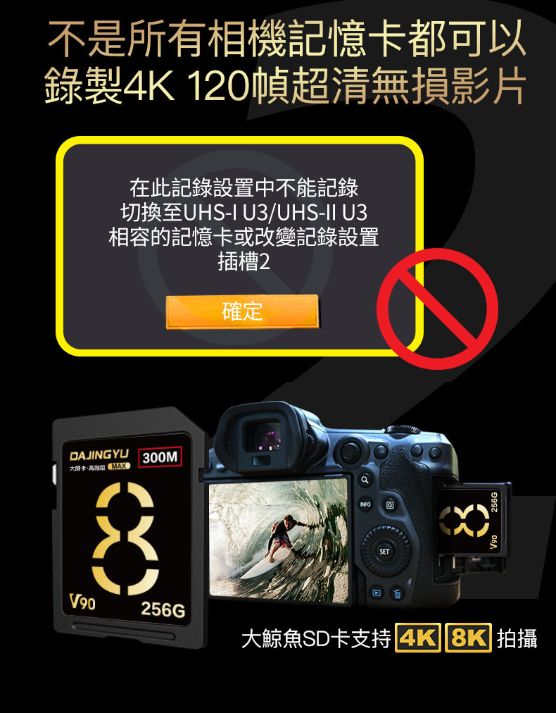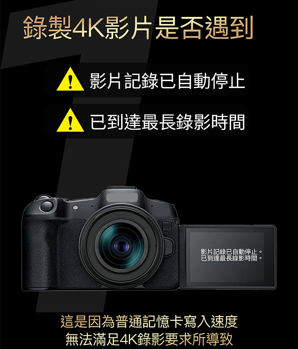 錄影穩定性 支援 4K 120fps / 8K 壓縮錄影不中斷,防止錄影自動停止