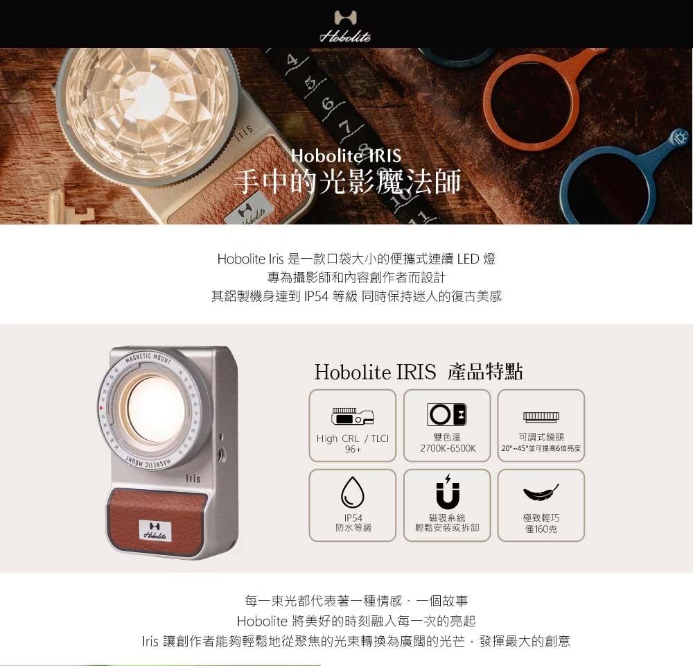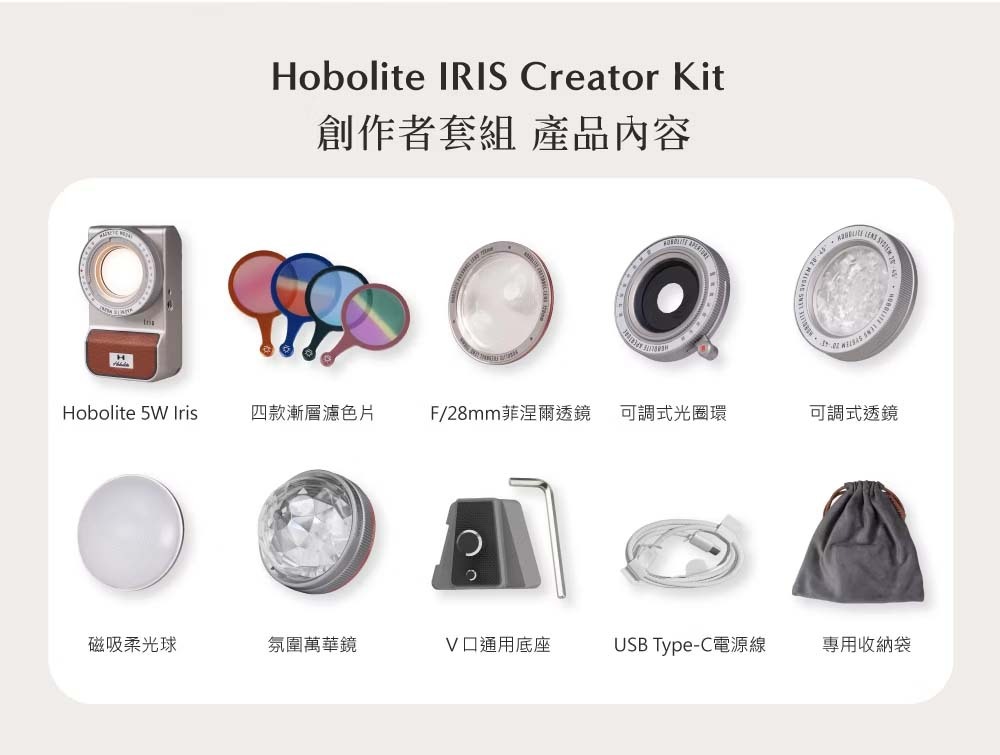 Harlowe IRIS 創意便攜燈 5W 創作者套組,專為對創意照明有極致追求的使用者量身打造。無論您是VLOG創作者、探店愛好者或是隨時隨地的攝影愛好者,這款套組都將是您捕捉創意光影的最佳助手。