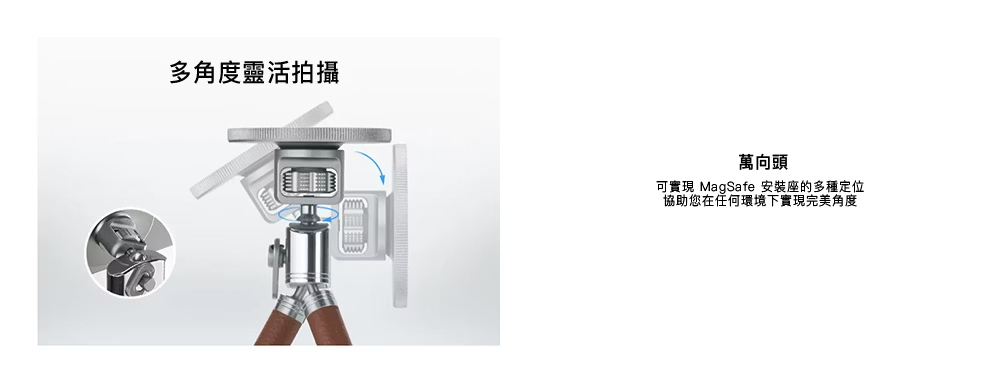 MagSafe 設備的終極桌面三腳架 Harlowe 桌上型三腳架完美融合了復古美學和現代功能,旨在增強您的行動攝影和內容創作。 Classic 和 Studio 版本的三腳架具有耐用的結構和永恆的風格,為忙碌的創作者提供多功能性和精確性。
