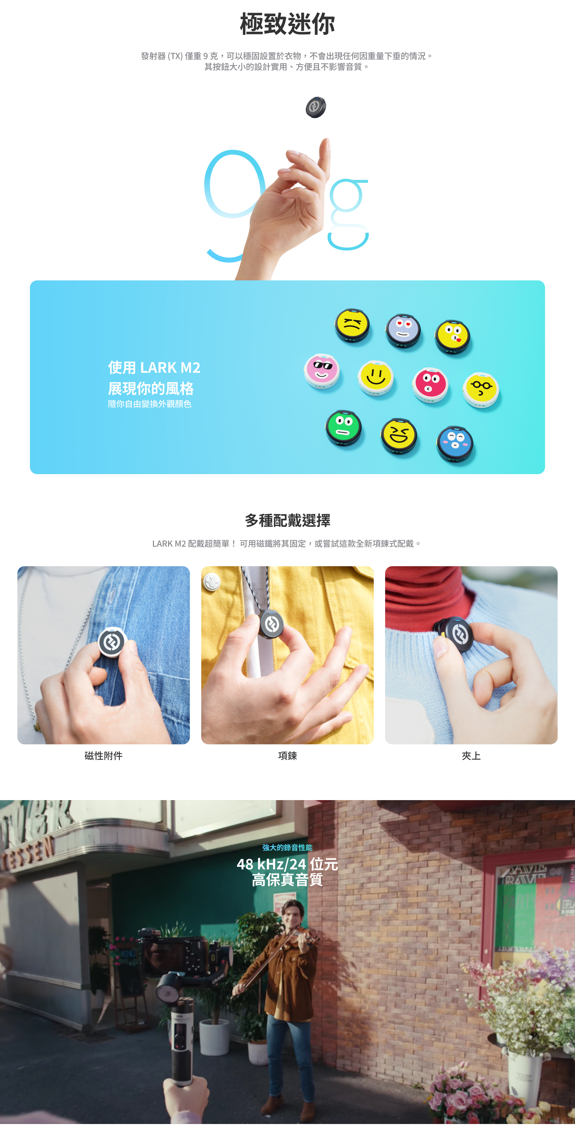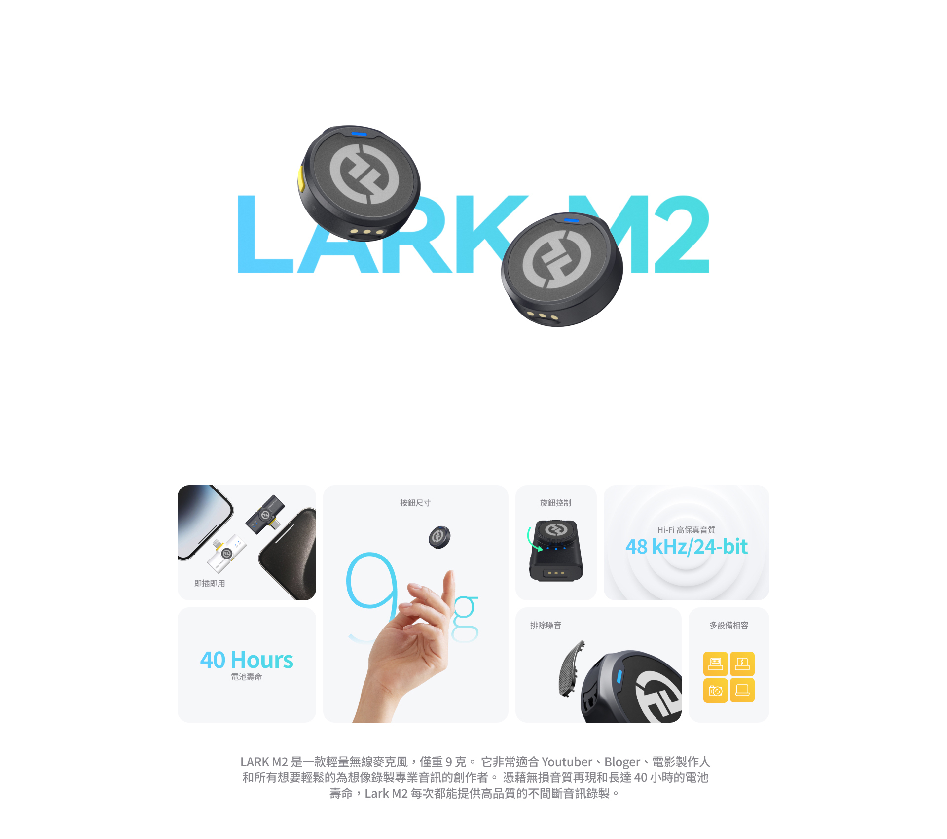 Hollyland LARK M2是一款輕量無線麥克風,僅重 9 克。它非常適合 Youtuber、Bloger、電影製作人和所有想要輕鬆的為想像錄製專業音訊的創作者。