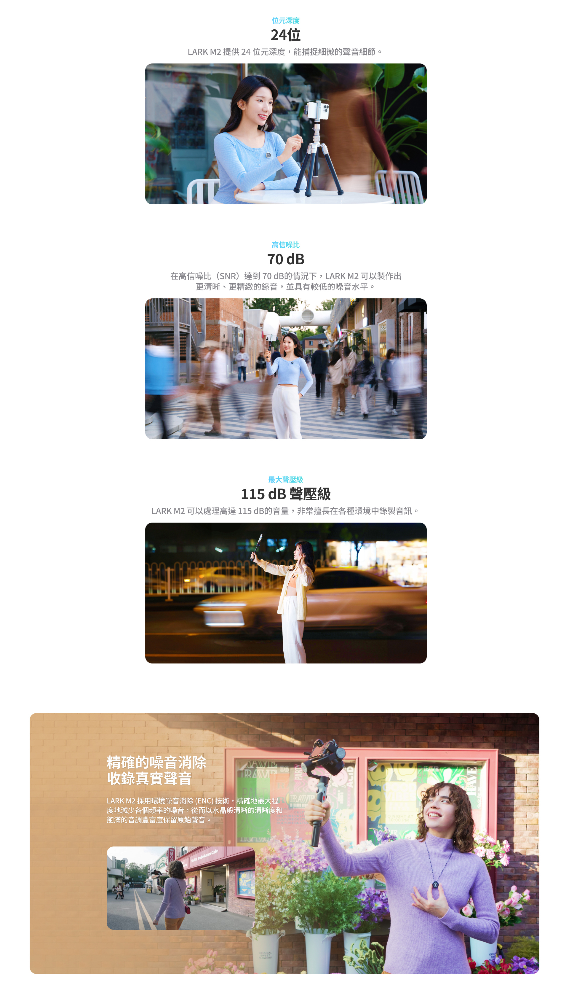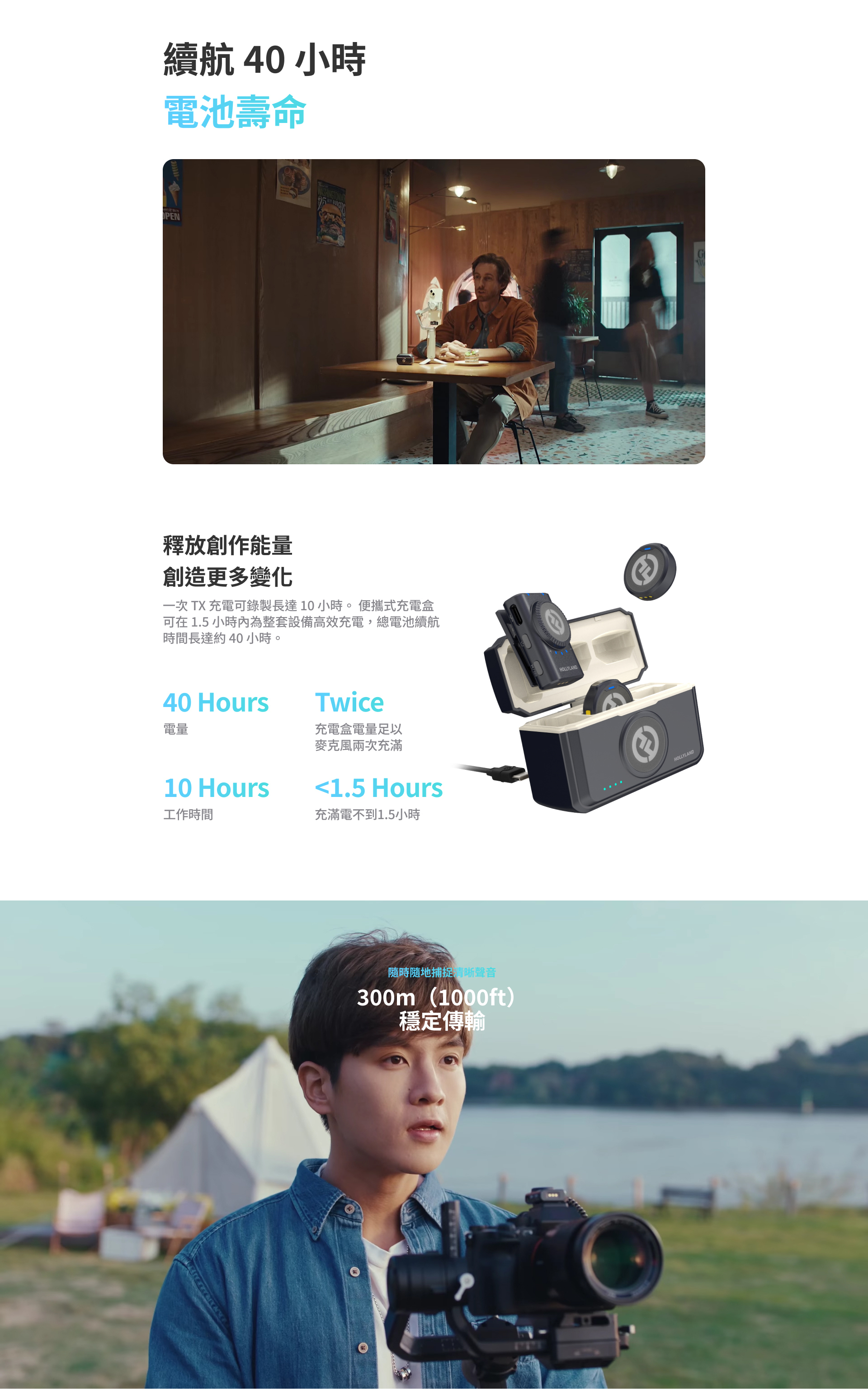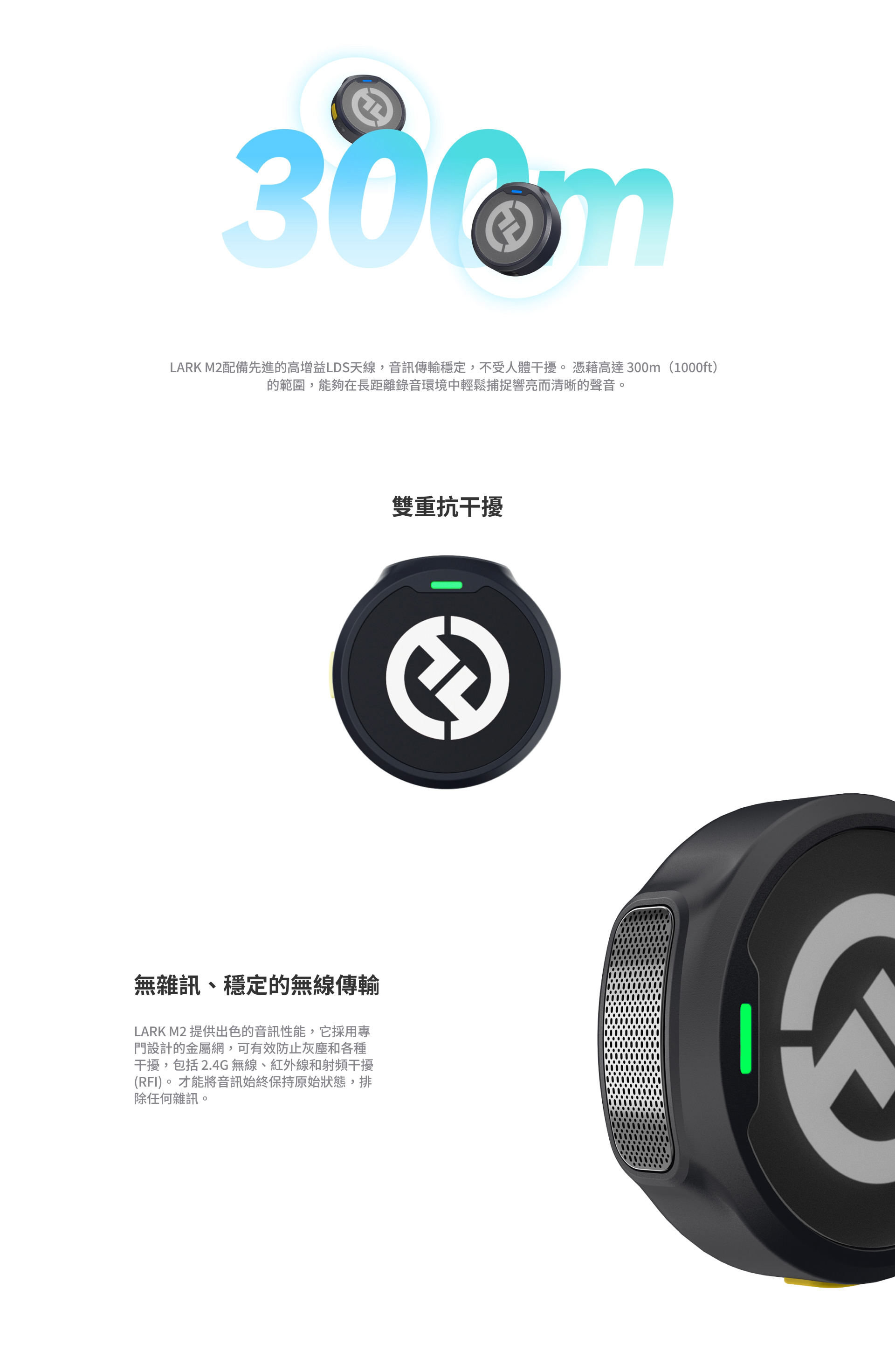 憑藉無損音質再現和長達40小時的電池壽命,Lark M2 每次都能提供高品質的不間斷音訊錄製。