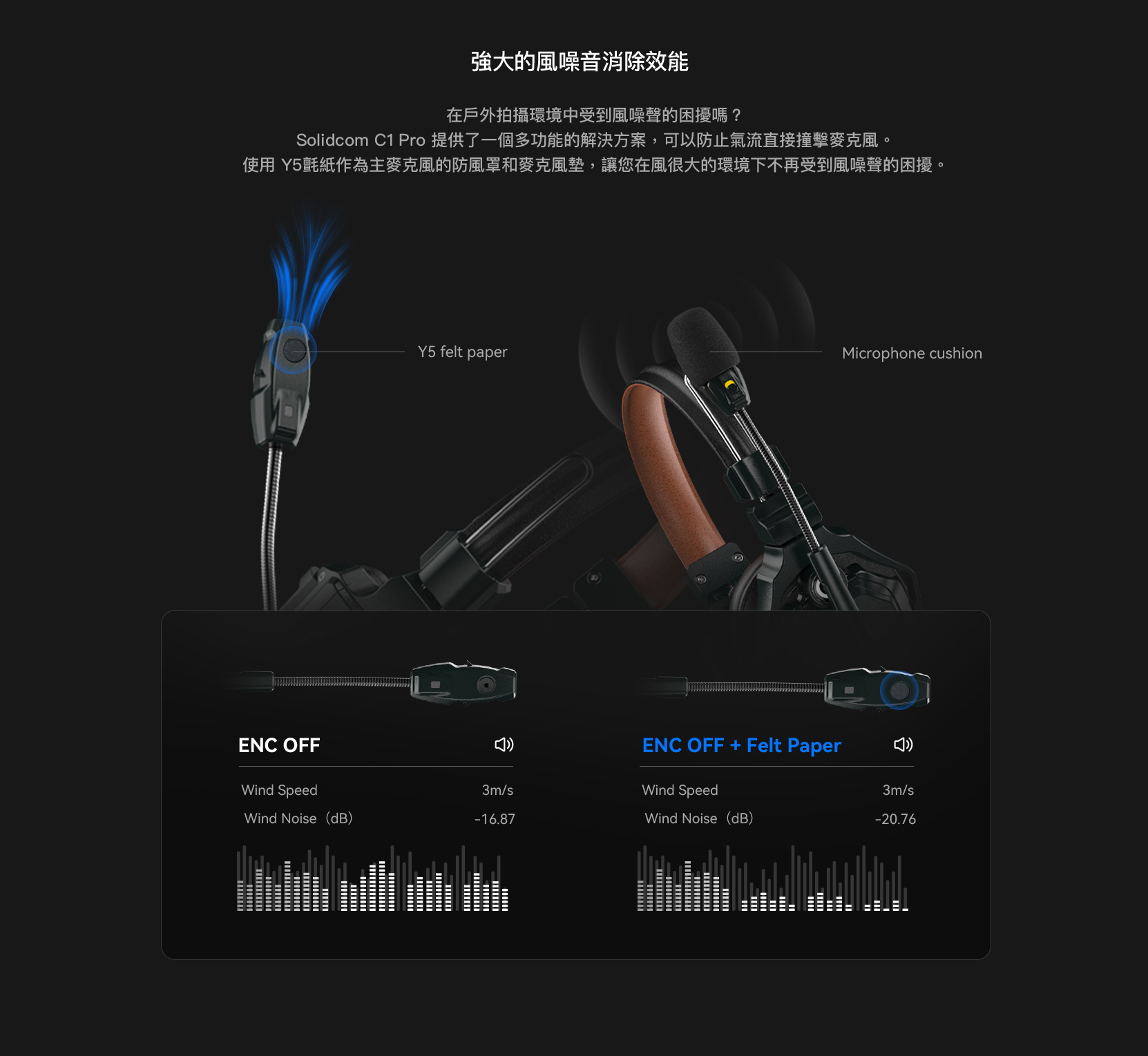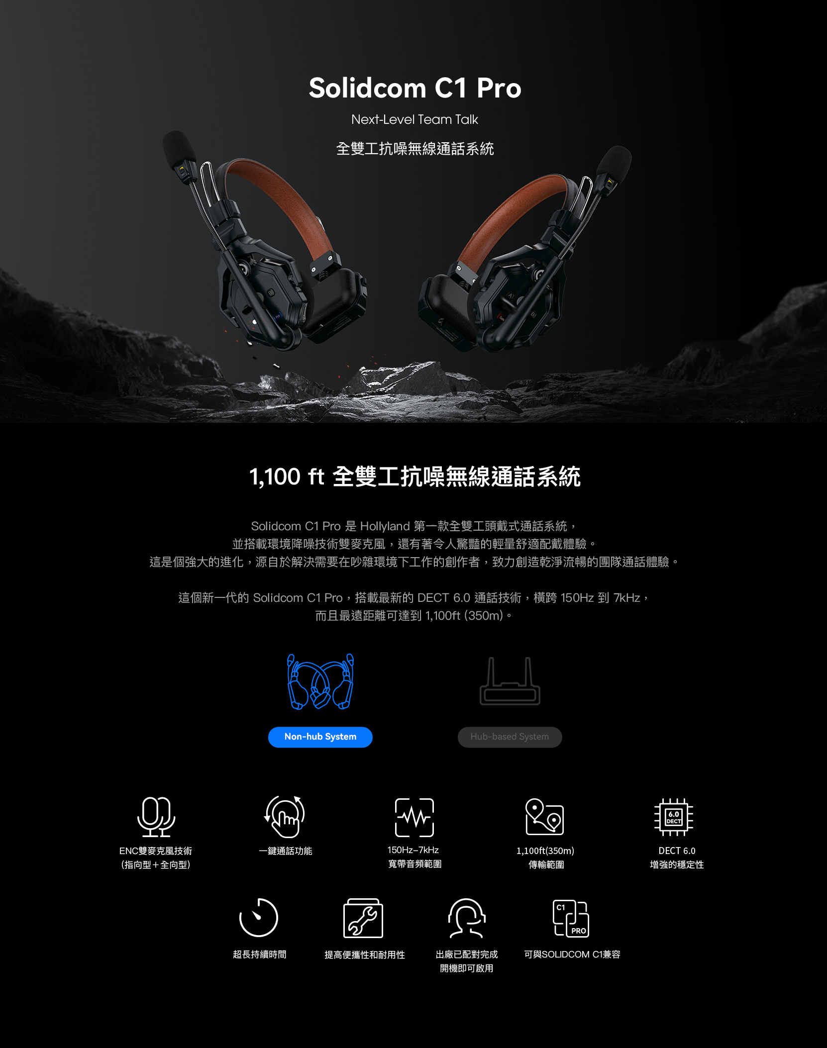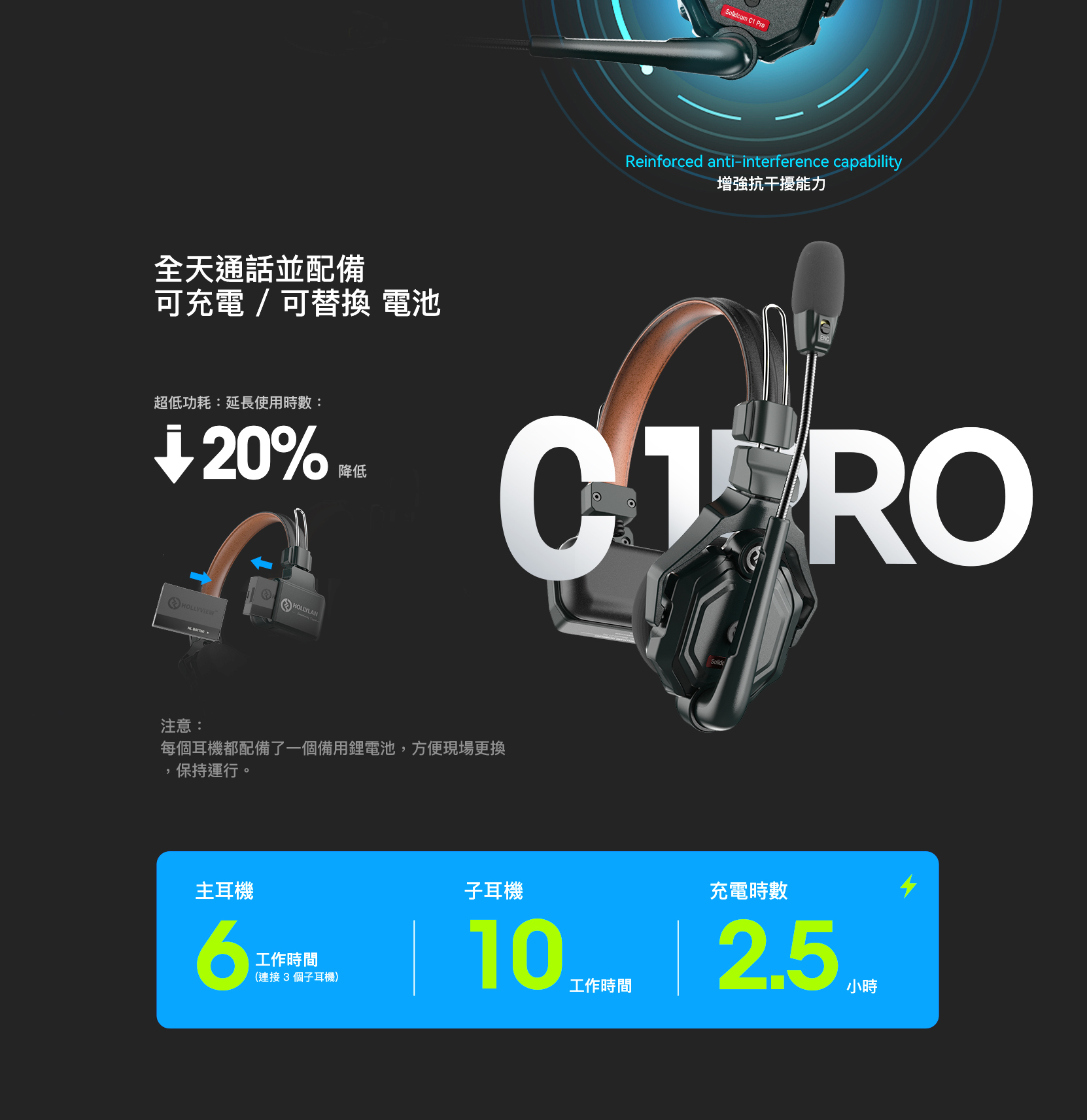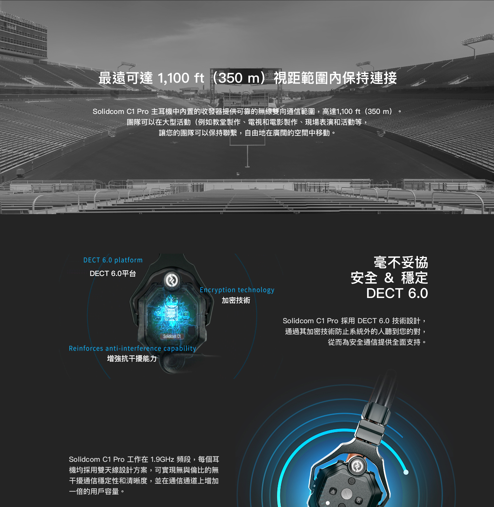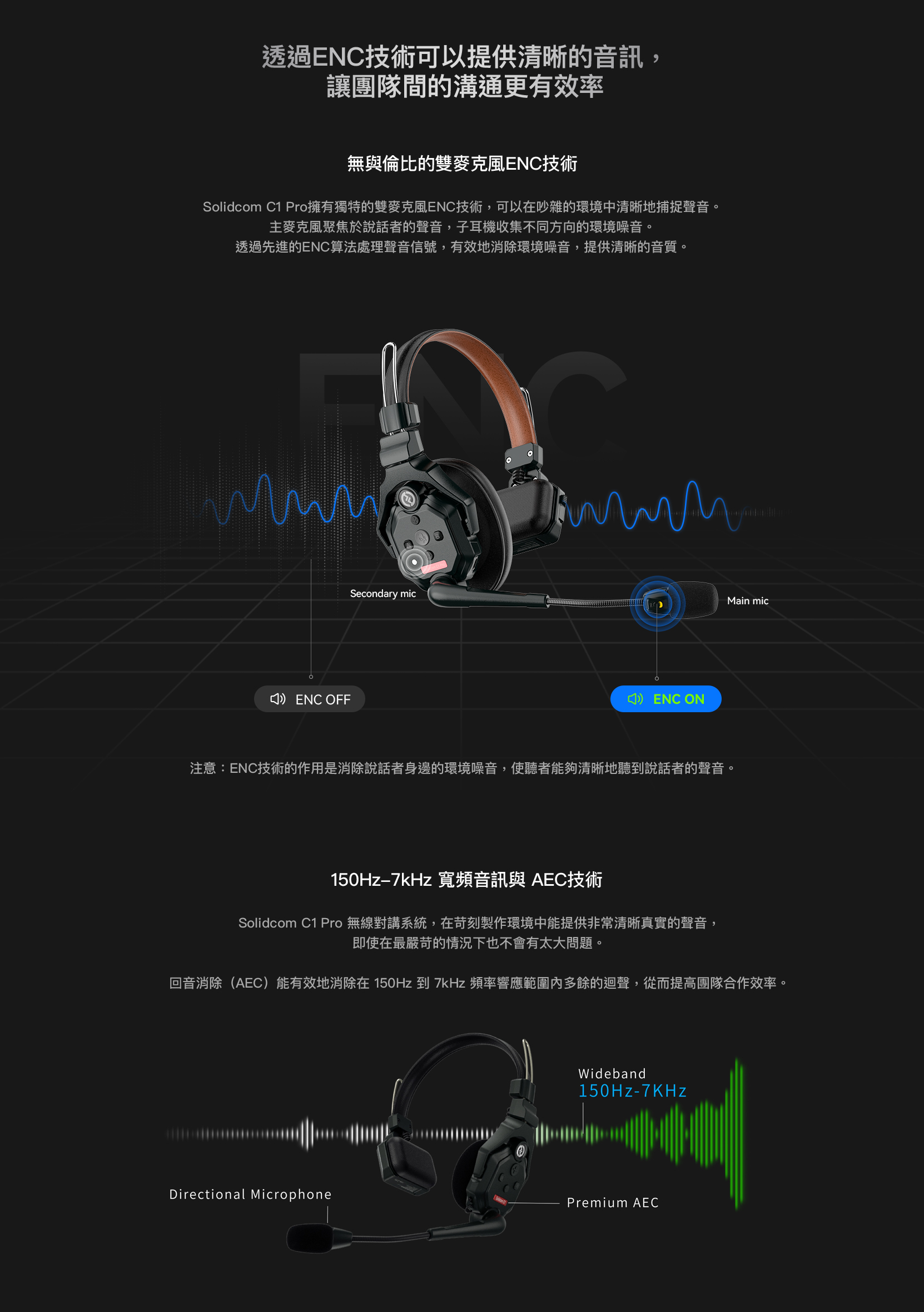導入首創 「全複式無線互通耳機系統」,以 「雙微環境降噪技術 (ENC)」 為強大特點。在環境吵雜的工作環境下,耳機內的聲音依然保持清晰流暢。