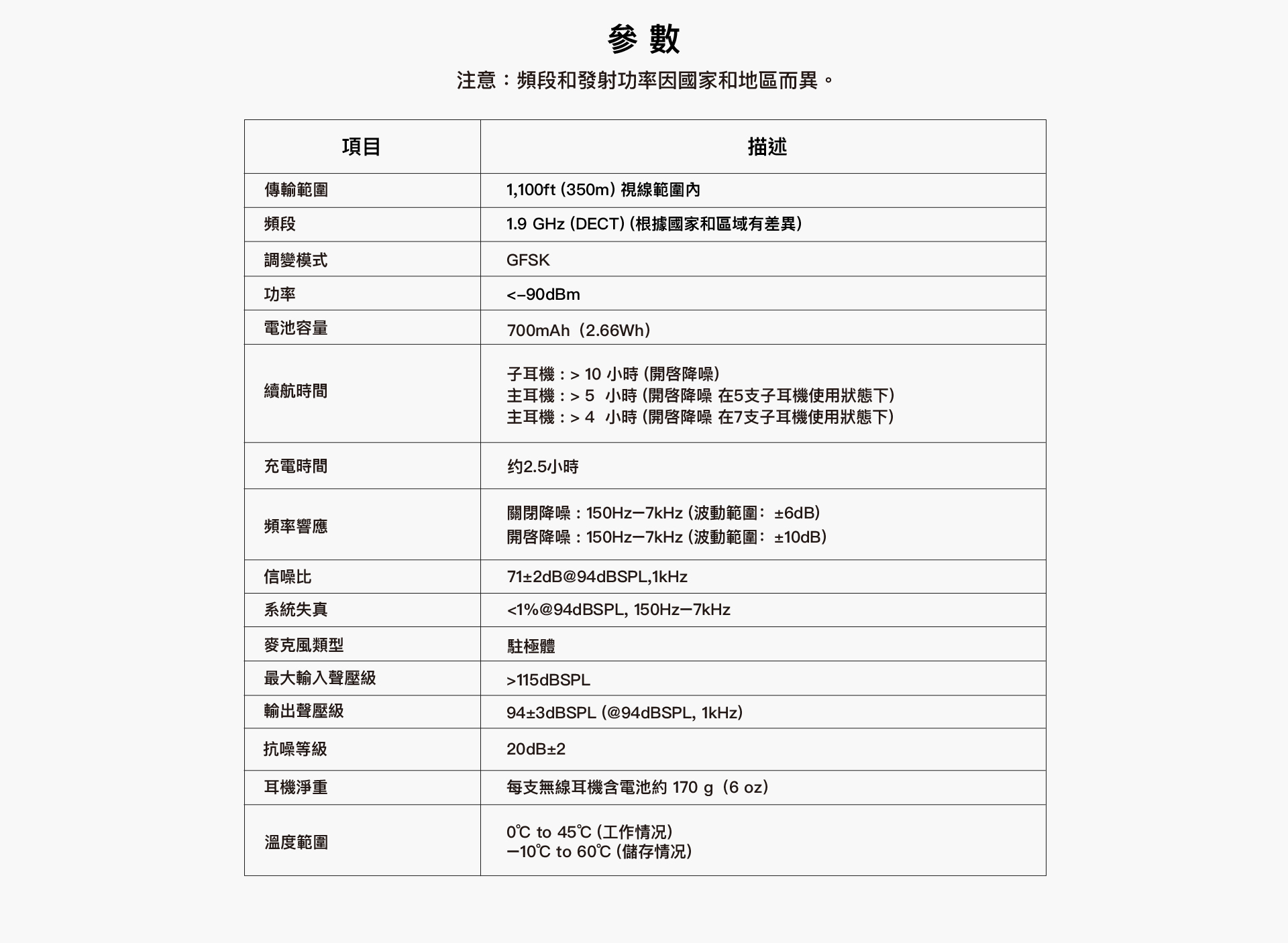 並使用先進DECT 6.0 技術、150Hz 至 7kHz 的寬頻音頻範圍,通訊範圍可達 1,100 英尺(350 米)。