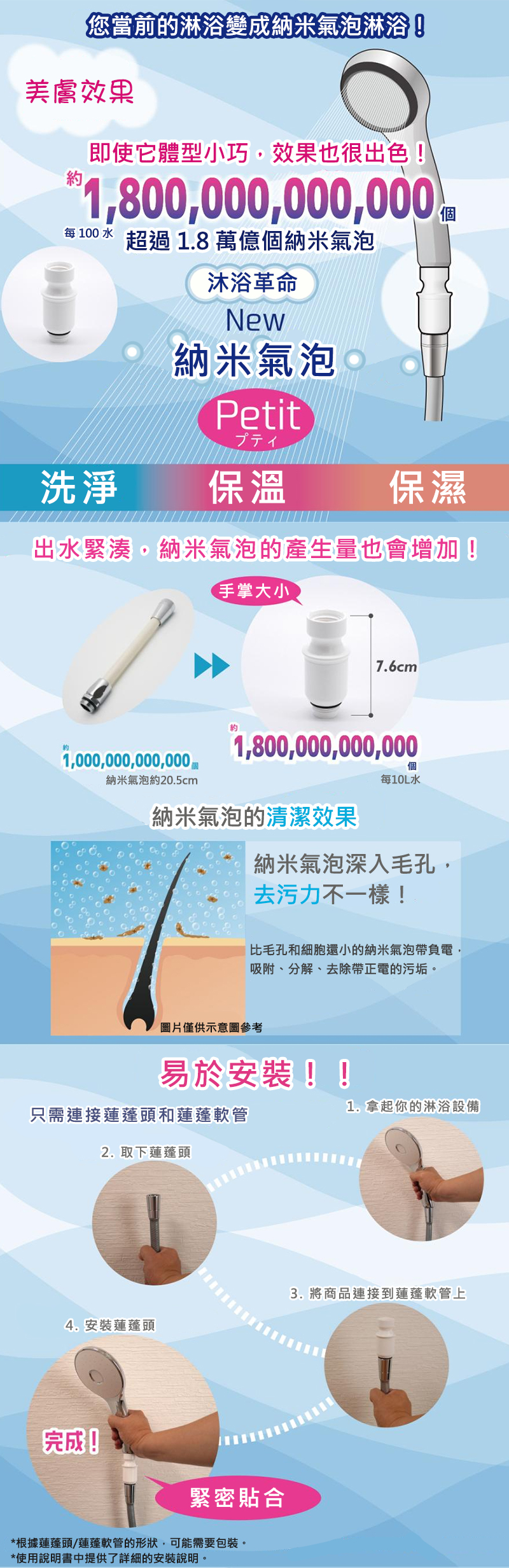 只能使用於一般規格蓮蓬頭,部分特殊蓮蓬頭可能無法安裝