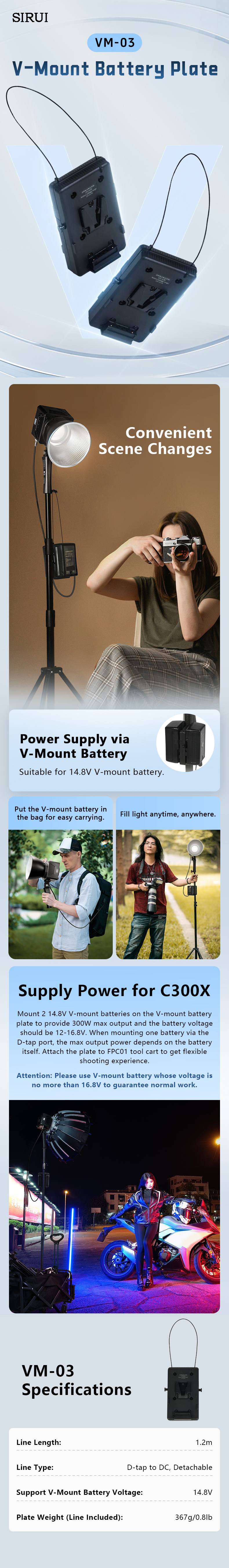 SIRUI VM-03 C300X V口電池掛板