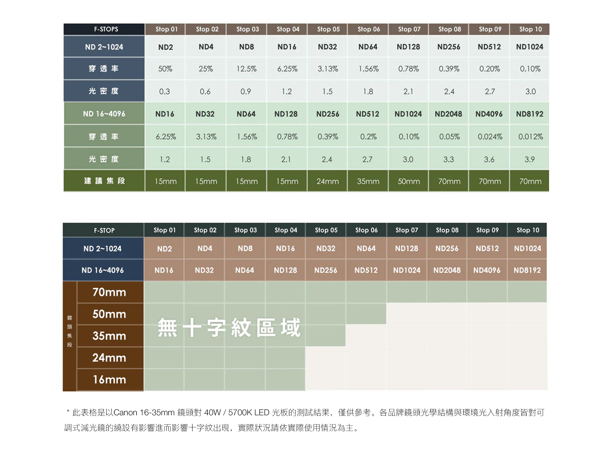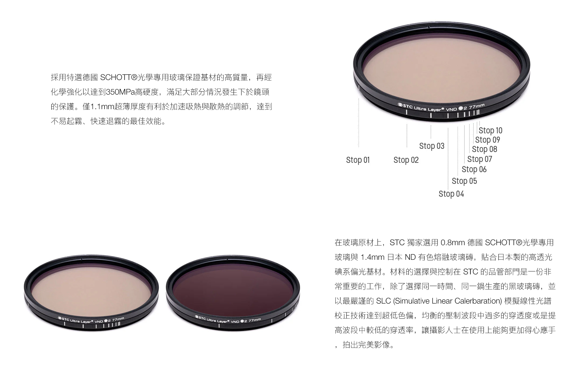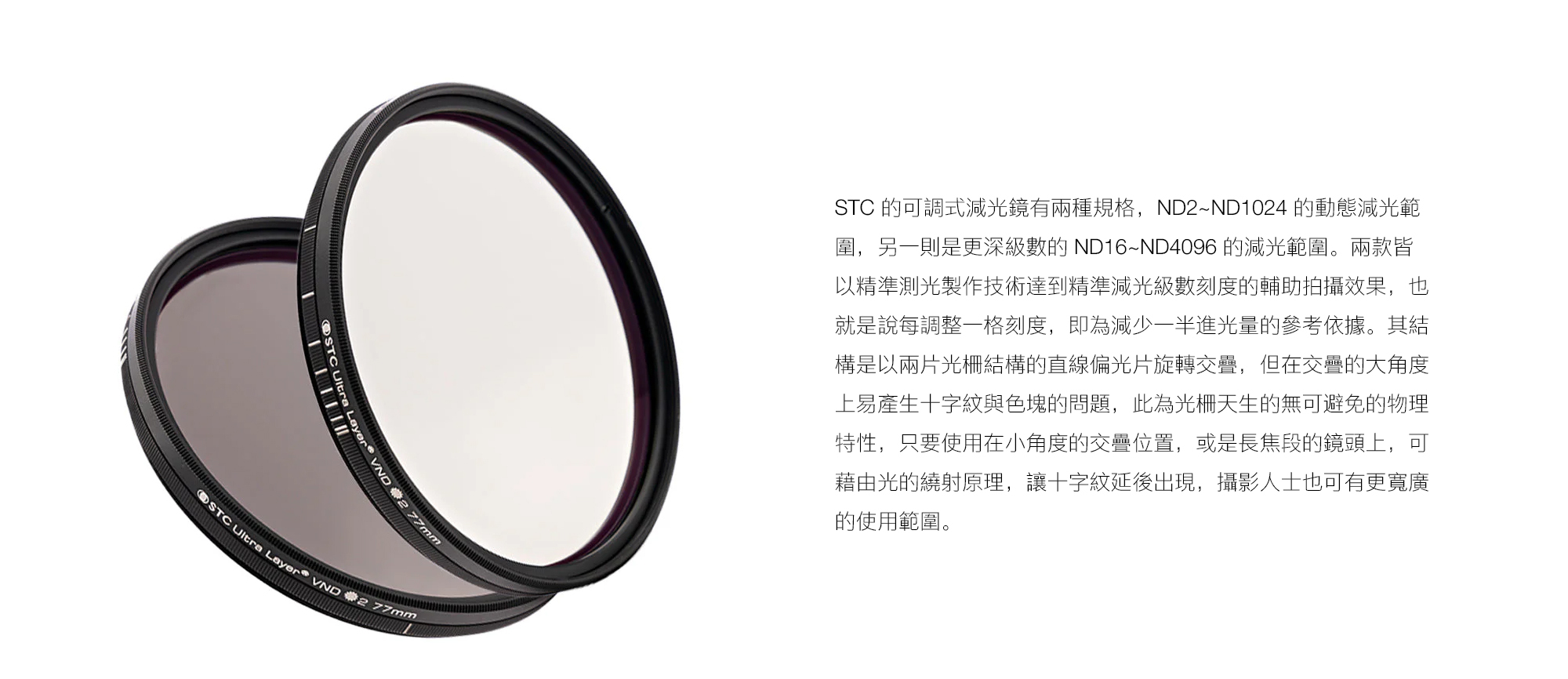 ND 減光鏡全名為 Neutral Density Filter,即是中性灰階濾光鏡,理想值為平均過濾各種波段光線的減光功能,可以解決大光圈鏡頭或是慢速快門在明亮場景時過度曝光的困擾。