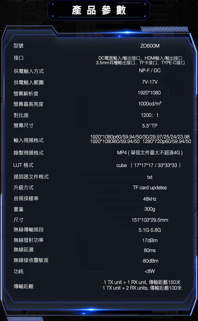 Shimbol ZO600M 5.5" 1080p60 Wireless HDMI Touchscreen 無線圖傳監視器